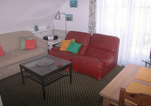 Wohnung 8Wohnung für 4 - 6 Personen im 1. Stock mit 2 Balkonen ( einer davon überdacht), Schlafzimmer mit Doppelbett, 2. Schlafzimmer mit 2 Einzelbetten, kleines Kinderbett möglich, Wohnzimmer mit Doppelschlafcouch, Duschbad und Küche, Kühlschrank mit Gefrierfach, 4-Platten-Herd mit Backofen. Balkone in Südlage zum Teil überdacht. Auf Wunsch stellen wir Ihnen eine Mikrowelle, Kinderbett und Hochstuhl unentgeltlich zur Verfügung. Waschmaschine und Trockner werden über einen Münzautomaten abgerechnet. Über W-Lan haben Sie kostenlosen Internetzugang. Unseren Garten können Sie zum Spielen und Entspannen nutzen, Sandkasten und Schaukelgerät, Liegestühle und sonstige Gartenmöbel stehen Ihnen zur Verfügung. Unterkunft: 48m² Ferienwohnung/App. |