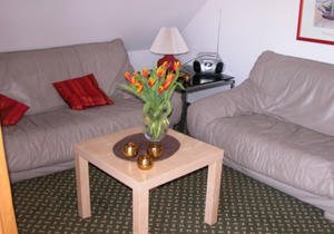 Wohnung im Erdgeschoss mit Terrasse für bis zu 4 Personen. Schlafraum mit Doppelbett (1,60m breit), Wohnzimmer mit Doppelschlafcouch, Küche, Kühlschrank mit Gefrierfach, 4-Platten-Herd mit Backofen, Duschbad. Auf Wunsch stellen wir Ihnen eine Mikrowelle, Kinderbett und Hochstuhl unentgeltlich zur Verfügung. Waschmaschine und Trockner werden über einen Münzautomaten abgerechnet. Über W-Lan haben Sie kostenlosen Internetzugang. Unseren Garten können Sie zum Spielen und Entspannen nutzen, Sandkasten und Schaukelgerät, Liegestühle und sonstige Gartenmöbel stehen Ihnen zur Verfügung. Unterkunft: 35 m² Ferienwohnung/App. |