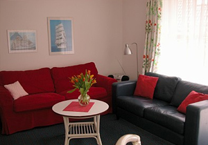Wohnung 6Wohnung im Erdgeschoss mit Terrasse für 4 Personen und ein Baby. 1 Schlafraum mit Doppelbett (kleines Kinderbett möglich), Wohnzimmer mit Doppelschlafgelegenheit, Duschbad, Bad, Küche mit Geschirrspüler, Kühlschrank mit Gefrierfach, 4-Platten-Herd mit Backofen. Auf Wunsch stellen wir Ihnen eine Mikrowelle, Kinderbett und Hochstuhl unentgeltlich zur Verfügung. Waschmaschine und Trockner werden über einen Münzautomaten abgerechnet. Über W-Lan haben Sie kostenlosen Internetzugang. Unseren Garten können Sie zum Spielen und Entspannen nutzen, Sandkasten und Schaukelgerät, Liegestühle und sonstige Gartenmöbel stehen Ihnen zur Verfügung. Unterkunft: 43 m² Ferienwohnung/App. |
